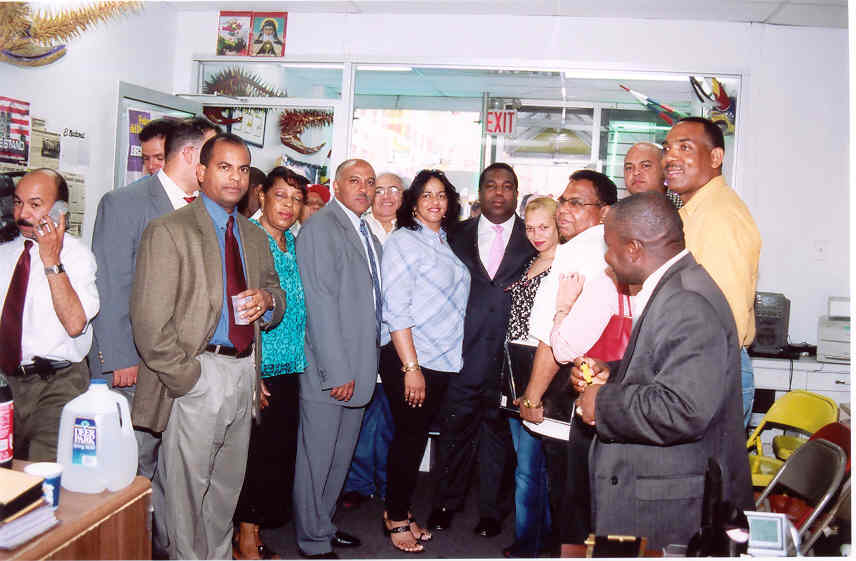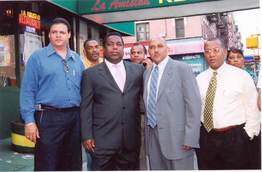 “Es una tarea del consulado hacer que nuestra comunidad se sienta apoyada sin importar las banderías e intereses políticos, por eso me comprometo ha tomar todas las medidas necesarias para lograr que nuestra gente participe con mejor suerte en la política norteamericana, porque en la medida que apoyemos a los nuestros, mayor serán los resultados para favorecer nuestra comunidad”. En lo referente a la Junta Central Electoral y la poca cantidad de dominicanos que han sido empadronado en un periodo de un año y meses, dijo que hablará con el Presidente Hipólito Mejía y los jueces del Alto Tribunal de Comicios en el primer viaje que de a la Nación Caribeña, para plantearle la necesidad de que se abran oficinas satélites de la Junta en el alto manhattan para que se inicie un proceso de cedulación, porque la mayor cantidad de nacionales aquí, no cuentan con el documento de identidad y electoral, documento primordial para ejercer el sufragio en el 2004. Aunque reconoció que faltan recursos para iniciar el proceso, dijo sin embargo que se reunirá posteriormente con los representantes de los partidos políticos para determinar una acción eficaz que permita lograr sin trabas que los dominicanos ejerzan el sufragio en el 2004. El Cónsul General emitió estas declaraciones al visitar al presidente del desfile dominicano en manhattan, Nelson Peña junto a otros líderes comunales a quienes escuchó y prometió dar seguimiento a sus demandas. |