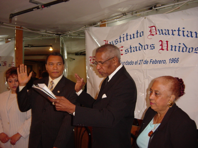 juramentado como Miembro de Honor del Instituto Duartiano. Lo Juramenta el Presidente de la entidad Duartiana, Sr. Bienvenido Lara Flores.