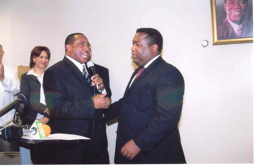 Eludis Pérez, agradeció al presidente Hipólito Mejía por permitirle interpretar y poner en ejecución su obra de gobierno a favor de la comunidad dominicana en el exterior. También a todo el personal de la Sede que hicieron posible el buen desempeño de su agenda de trabajo. Exhorto a la comunidad a respaldar el trabajo del cónsul entrante, asegurando que su labor será mucho mejor, por la capacidad de trabajo que porta en su folio de presentación, agrego “a dirigido eficientemente una de las secretaria de Estado mas difícil, la de la juventud y lo hizo bien, pero además ha dirigido los grupos de la juventud a nivel mundial y una ardua labor en nuestro glorioso Partido Revolucionario Dominicano en Santo Domingo, por muchos años”. De su lado el cónsul entrante, afirmo que su tarea es especial y comprometedora, porque viene a sustituir a una persona que ha hecho una labor ejemplar, “tengo que seguir emulando su ejemplo, sus ejecutorias, porque aquí no se viene a inventar, se viene a enriquecer lo que había, se viene hacer un trabajo por los dominicanos de aquí, sin banderías políticas ni religiosas”. Agrego “no vengo en casería de brujas, la mayoría del personal que esta se queda conmigo, porque hay que reconocer el trabajo de estas personas que ha sabido interpretar junto a Eludis el pensamiento del presidente Hipólito Mejía, a favor de su comunidad del exterior”. Dijo que contará con Luis Eludis Pérez, porque las experiencias son importantes para continuar mejorando los servicios que se ofrecen aquí, para los dominicanos de ultramar. “Recueden que aunque no soy de esta comunidad, primero soy ante todo dominicano y me duele lo que le pase a mi gente, tengo que decir que aunque no sea de esta comunidad, si tengo un compromiso con los dominicanos que viven en la ciudad de New York y los Estados Unidos”. Derecho y reconocimiento que durante muchos años me inculco el doctor José Fco. Peña Gómez, que fue un hombre que siempre lucho por los dominicanos en el exterior. Fue el doctor Peña Gómez que le dijo a ustedes que tenían que hacerse residentes y ciudadano para tener derechos adquiridos en los Estados Unidos. Fue quien le dijo que los dominicanos tenían derechos a votar y elegir y por ese compromiso se logro el voto del dominicano en el exterior y por ese compromiso, tengo que hacer el trabajo que se me ha encomendado. Dijo que en la República Dominicana muchas veces no se reconoce el valor de esta pujante comunidad, hay quienes entienden que solo sirven para mandar remesas y muchas veces tienen mala fama los dominicanos de aquí por algunos compatriotas que hacer malas acciones, pero no es así, los dominicanos en general son gente trabajadores que durante los últimos 40 0 50 años en esta ciudad de manera honesta, laboriosa y que necesitan también que se le reconozca su derecho en este consulado y eso es lo que viene hacer el nuevo cónsul a trabajar para esta comunidad. Nuestra tarea es trabajar con todo los dominicanos de buena voluntad, para que realmente sientan que los dominicanos de allá cuidan su terruño aquí, esos son cosas importantes que yo me comprometo hacer. Tony Peña, no es hombre de hacer cosas que vallan en contra de la moral, a pesar de mi juventud, se trabajar y no haré nada que empañe la buena labor que ha hecho mi antecesor, un viejo refrán dice “cuando usted esta a mitad de río no se cambia de caballo, hay que seguir haciendo un trabajo aquí en el consulado, como el que hizo Eludis Pérez”. Haré un mandato que se diga por aquí paso una persona caballerosa, abierta y sincera a las personas siempre y cuando se de interés para la comunidad dominicana en el exterior. Estos cambios son importantes, porque eso es lo que necesita República Dominicana, trabajo, paz, y sobre todo confianza, en un país que a pesar de las limitaciones económicas esta entre los países con mayor crecimiento económico y eso no es fortuítos, eso se debe a un gobierno responsable a un hombre que no le tiembla el pulso para hacer las cosas y que le quedan dos años mas y quien sabe sin mas para seguir trabajando a favor de todos los dominicanos. Gracias realmente, por la confianza que se ha depositado bajo mis hombros, no lo voy a desfraudar porque no lo hice en República Dominicana y aquí menos, muchas gracias. Estuvieron presentes el doctor Rafael Lantigua, presidente federal del PRD para Estados Unidos, Guillermo Linares quien aspira a la Asamblea Estatal, Consejal Miguel Martínez, representantes políticos de New Jersey , la esposa de Peña Guaba, Keyla de Peña entre otras personalidades.