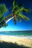 uninterrupted kilometers of fine white sand beaches, shadowed by coconut trees