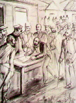 THE MARTYRDOM OF SANCHEZ, JULY, 1861 "Commanded by a few Dominican officers and by one or another of those who changed their minds, the neighbors from the town of cercado drove the rebels out, pursuing them over the mountains until many of them crossed the border, not without leaving behind several prisoners, among whom, it can be noted, was General Sanchez, who had been gravely wounded. The number of prisoners rose to twenty-one. On Santana's orders they were subjected to a drastic and irregular proceeding and were executed on July 4th... ...Those executions constituted '...a gross and unspeakable act of tyranny,' for, according to the eyewitnesses, they were condemned in what would only be called a parody of a court martial, incapable of satisfying in any way the legitimate demands of a rational proceeding. Brought to this court martial were the accused, who were treated as enemies, not as prisoners. They were condemned to death, and this sentence was carried out in a way that is repugnant to remember, for while some were shot, others were beaten or hacked to death, an act that was objected to by a commander of the Crown's regiment, who happened to be in San Juan with this company." General Jose de La Gandara, "Annexation and War in Santo Domingo," Madrid, 1884