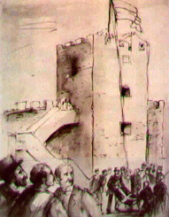 THE OVERTHROW "The solemn hour had arrived: a group of patriots anxiously awaited those who were late in a distant and solitary part of the city called La Misericordia, at the foot of Saint Giles Fort. . . One of the band finally arrived, excited and out of breath "I think they have discovered everything, " he said. "A patrol has seen following me, and I had to take the long way around in order to get here. " These words put fear into the few that were listening; a frightened one already spoke of returning home and leaving the glorious project. "NO," a robust, boyish voice replied firmly, carelessly disturbing the quiet night. "WE CANNOT TURN BACK. COWARDLY OR VALIANT, WE MUST ALL GO TO THE END. LONG LIVE THE DOMINICAN REPUBLIC! He spoke, and a loud firing of his gun noisily accented the heroic cry. No one hesitated then: everyone renounced their lives and ran toward the venerable Conde Gate. The bold shot made by the intrepid RAMON MELLA announced to the world the birth of the Dominican Republic." Manuel De Jesus Galvan, February, 1883.